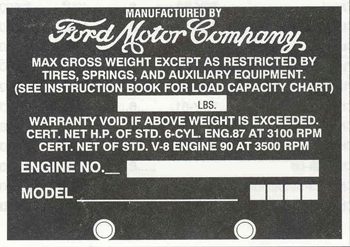 The serial and the engine number are the same on a 1947 Ford truck. It is stamped into the clutch housing and visible when the transmission cover is removed. It is also on the top left side of the frame near the steering gear. The first digit is a 7 for the year 1947. The second digit for all 8-cylinder powered trucks is a 9. The second digit for the 6-cylinder trucks is 1(one). The Letter identifies the model line: A=Passenger Car, C=1/2 Ton pickup and Y=1 Ton. The last 6 digits indicate the production sequence. |