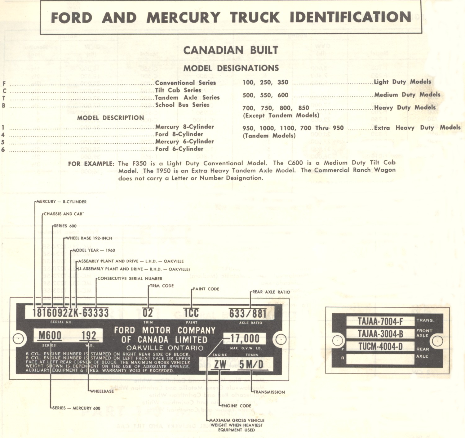 Fig 1: Typical Truck Rating Plate and Transmission and Axle