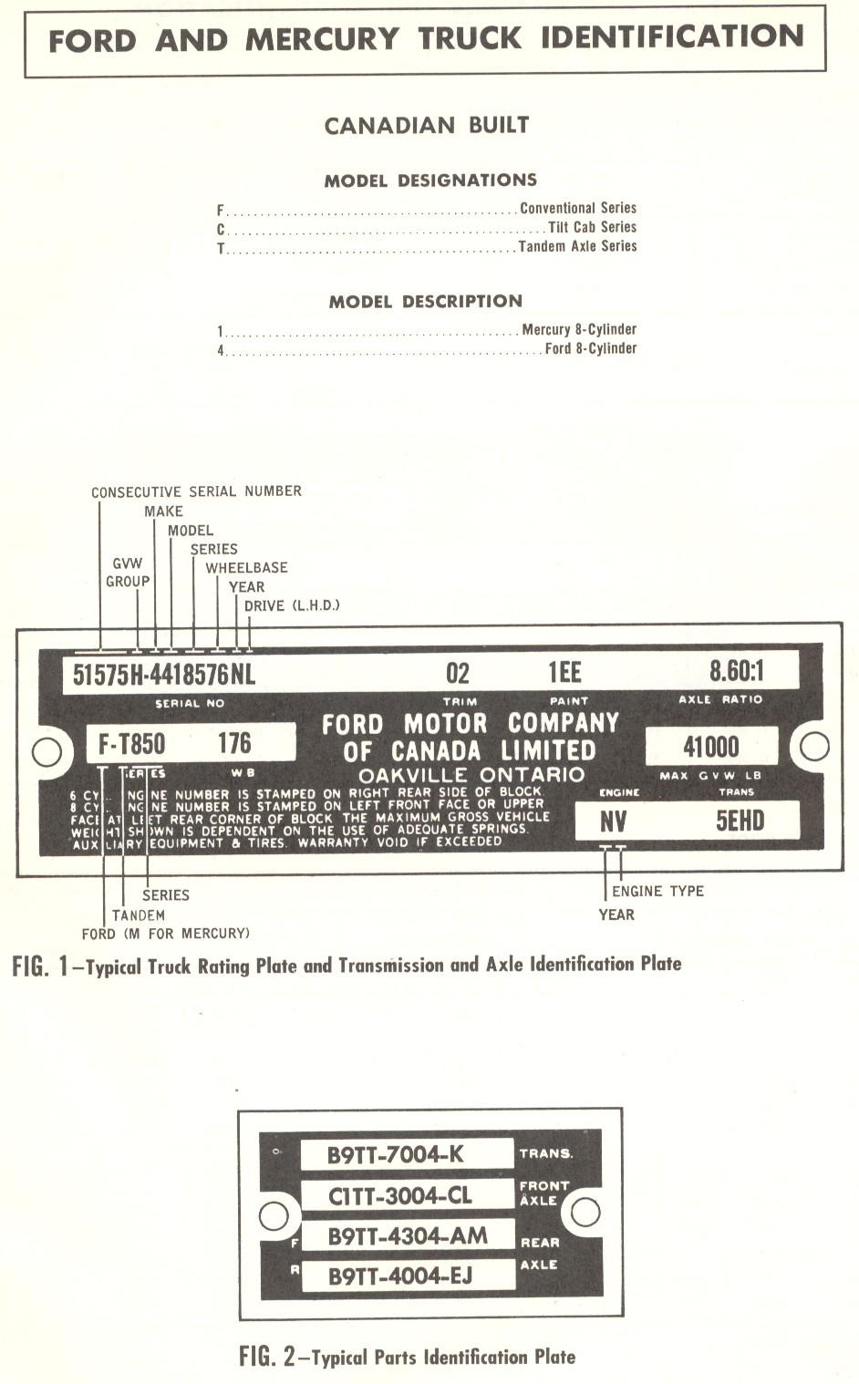 1961 Ford And Mercury Truck Canadian Serial Plate