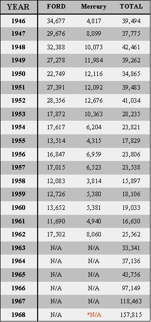 Production Figures for the Mercury Trucks* ( these figures are for TOTAL Mercury/Ford truck units produced 1/2 ton through the largest )